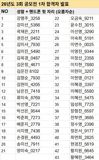 1차 합격자 명단